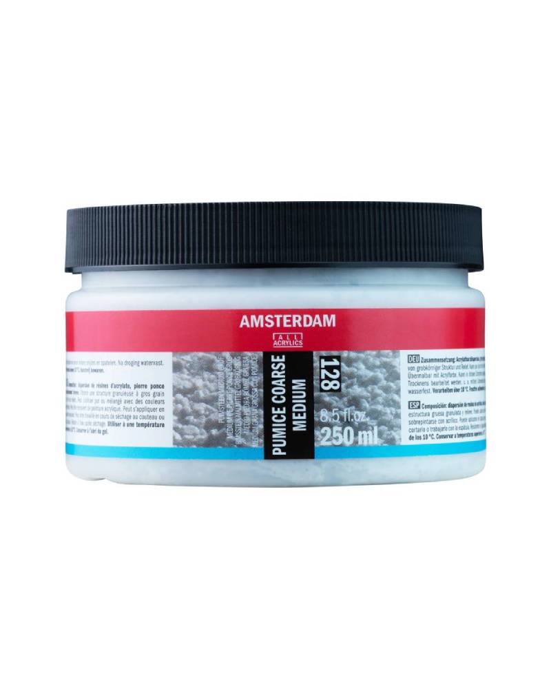 Amsterdam Pomice Medium è un prodotto innovativo pensato per artisti e creativi che vogliono aggiungere una texture ruvida e tridimensionale alle proprie opere. Questo medium contiene pomice colorata in grana fine, media o grossa, che può essere applicata direttamente dal barattolo, miscelata con pittura acrilica o utilizzata come base su cui dipingere. La sua particolare consistenza conferisce profondità e carattere ai lavori, permettendo di ottenere effetti realistici e interessanti, perfetti per progetti artistici e modellismo.