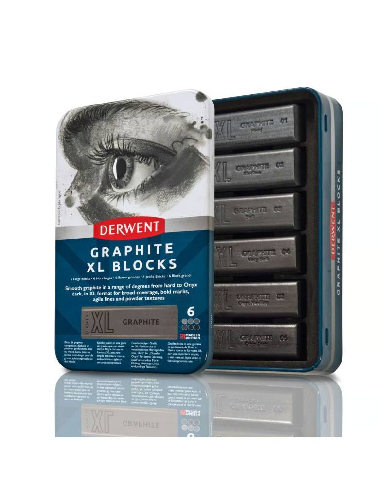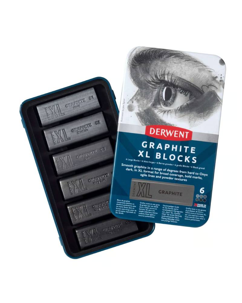 Il set Graphite XL Derwent comprende sei blocchi di grafite in tonalità selezionate per offrire la massima varietà tonale.