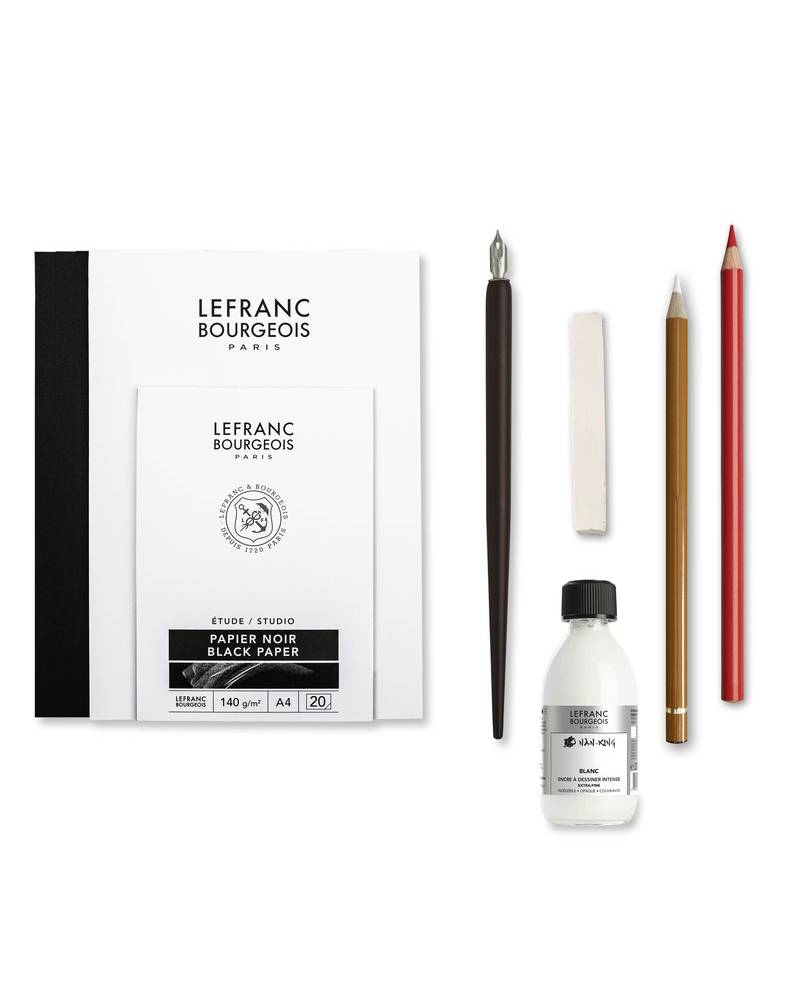Il Blocco Carta LeFranc Bourgeois – Studio Nero è un album essenziale per ogni artista che desidera lavorare su una superficie nera di alta qualità . Con 20 fogli di carta da 140 gr, un’ottima resistenza e una superficie nera profonda, è ideale per disegnare con pastelli colorati, tecniche secche e iridescenti. La sua compatibilità con tecniche umide leggere lo rende una scelta versatile e professionale per qualsiasi progetto creativo.