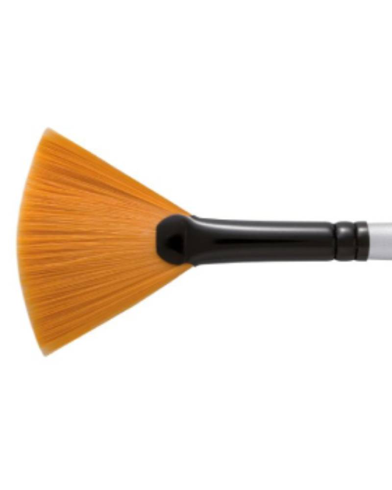 Il pennello a ventaglio è utilizzato principalmente per realizzare sfumature, texture naturali e effetti speciali, come la rappresentazione di erba, capelli o nuvole. Questo lo rende uno strumento essenziale per lavori dettagliati e artistici.