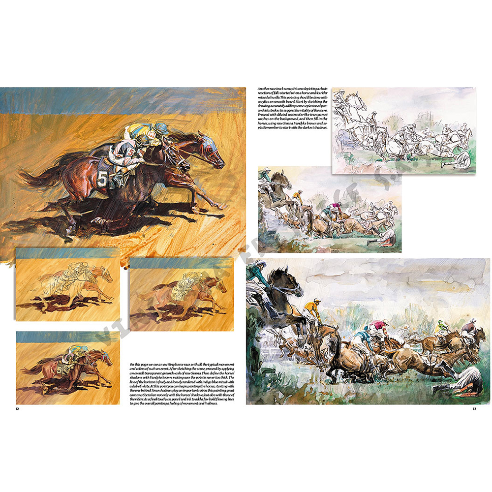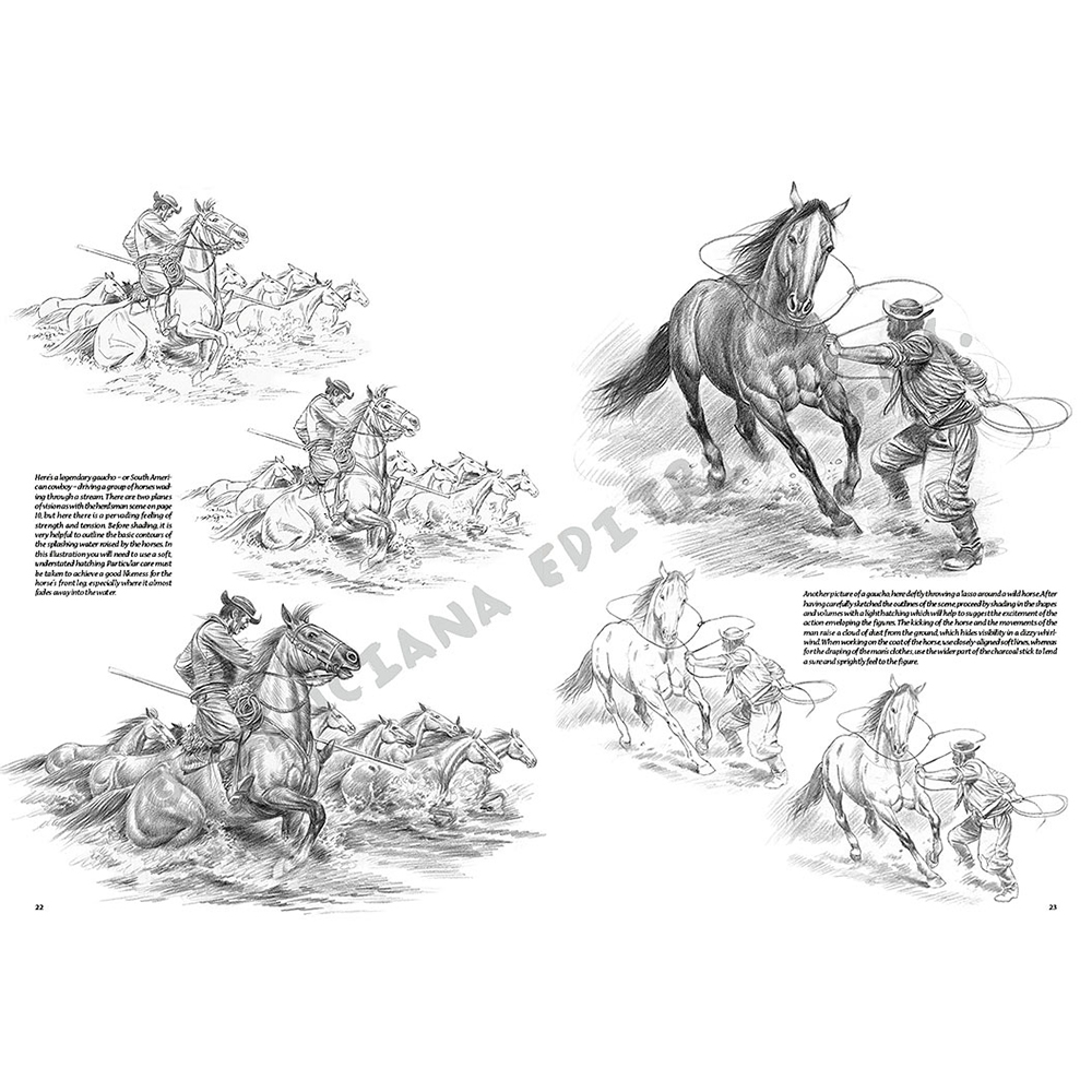 All’interno del volume si affrontano le tecniche fondamentali del disegno e della pittura, partendo dai principi base fino alle tecniche più avanzate. Sono illustrate diverse modalità di rappresentazione che aiutano a capire come disegnare soggetti in movimento, in particolare le figure umane e i cavalli.