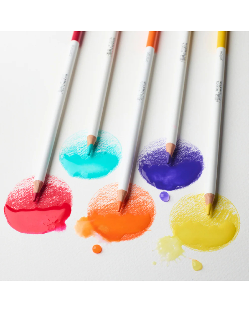 Le matite acquerellabili Winsor e Newton si distinguono per la qualità del pigmento e per la loro capacità di rilasciare colore in modo uniforme. Il tratto è morbido, intenso e modulabile, ideale sia per lavorazioni dettagliate sia per campiture più ampie.