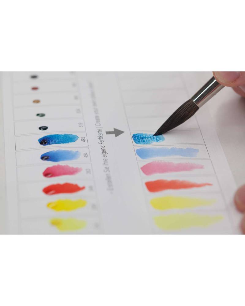 La Dot Card Acquerelli Super Granulati Horadam Schmincke è uno strumento prezioso per ogni artista che desidera sperimentare la linea Supergranulation prima di un acquisto completo. All’interno del kit troverai 50 gocce di colore secco, ciascuna pronta per essere attivata con acqua tramite pennello, permettendoti di testare ogni tonalità su carta da acquerello e valutare la texture granulata e la resa cromatica.