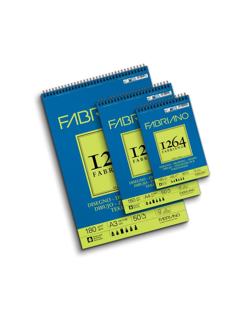 Il fabriano blocco da disegno “Linea 1264” è ideale per varie tecniche artistiche grazie alla carta bianca opaca da 180 g/mq. Sostenibile e priva di acidi, è disponibile in tre formati: A5 (30 fogli), A4 (50 fogli) e A3 (50 fogli). Adatto a principianti e professionisti.
