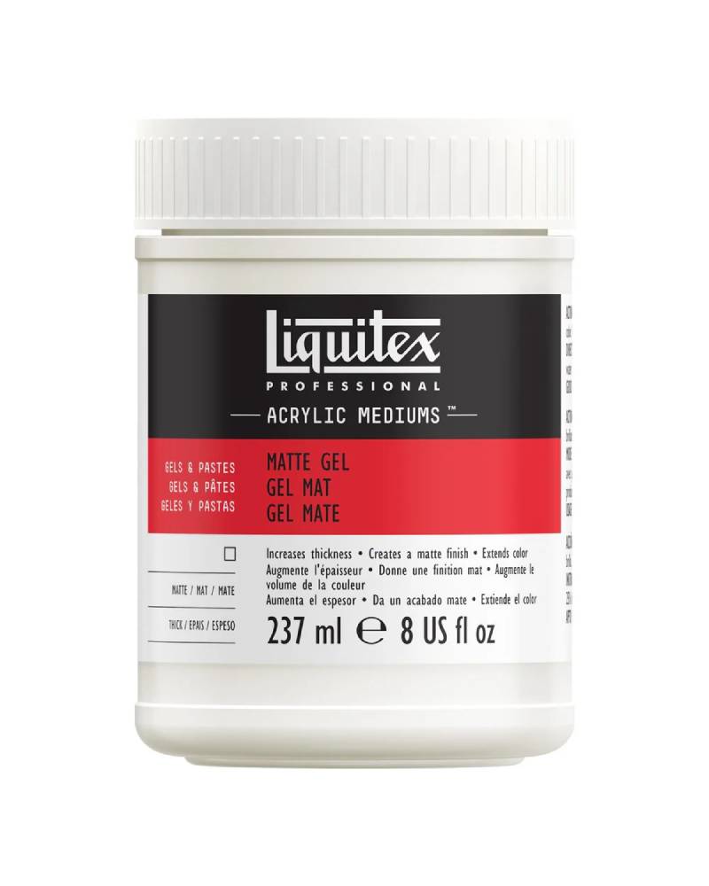 Questo matte gel medium può essere utilizzato anche come base preparatoria sul supporto. Applicato con una pennellessa sintetica, crea una superficie perfettamente piana e con maggiore aderenza, migliorando la presa dei successivi strati di colore. Inoltre, miscelato a Liquitex acrilici a bassa viscosità, come il Soft Body, consente di ottenere una profondità simile a quella dei colori a olio, facilitando sfumature morbide e transizioni fluide.