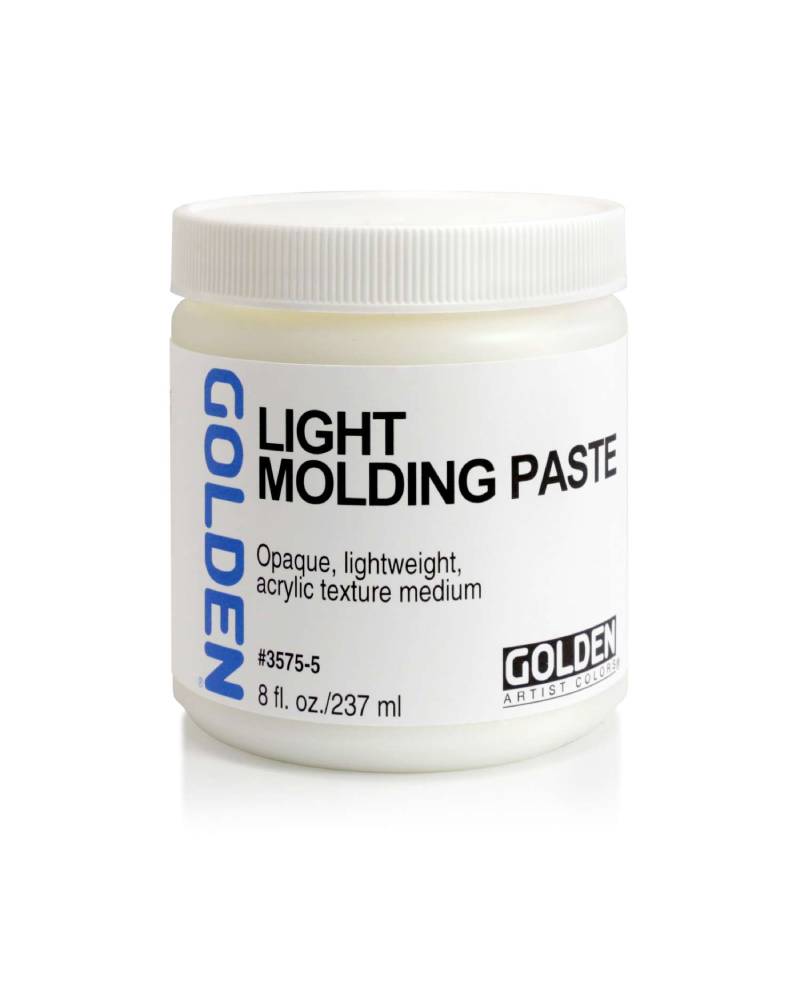 La Golden Light Molding Paste è una pasta modellante acrilica ultra-leggera, disponibile in due formati — 237 ml e 473 ml — progettata per creare effetti materici e tridimensionali su larga scala senza appesantire l’opera. Con una densità oltre il 50% inferiore rispetto alla Molding Paste tradizionale, offre una soluzione ideale per lavori su grandi tele o pannelli, mantenendo al contempo la leggerezza dell’opera.