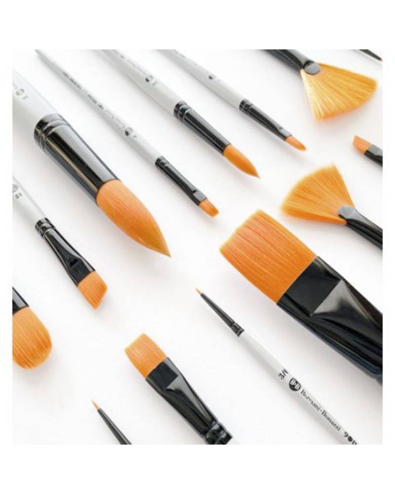 La selezione delle forme consente di affrontare ogni fase del lavoro pittorico. I pennelli tondi permettono di gestire dettagli, linee sottili e sfumature morbide; il pennello piatto è ideale per stesure uniformi e bordi netti; la lingua di gatto favorisce transizioni fluide; mentre il pennello obliquo offre precisione negli angoli e nei profili. Il kit pennelli Prisma Borciani e Bonazzi diventa così un set completo per esercitarsi, sperimentare e perfezionare la tecnica.