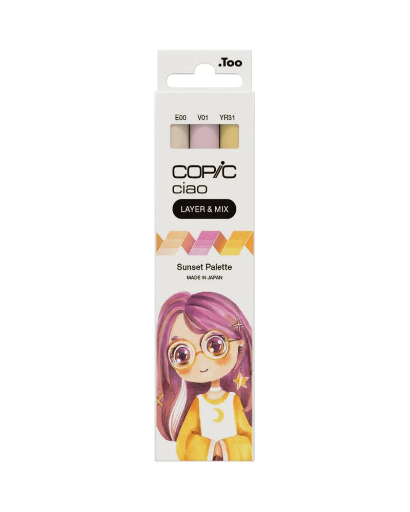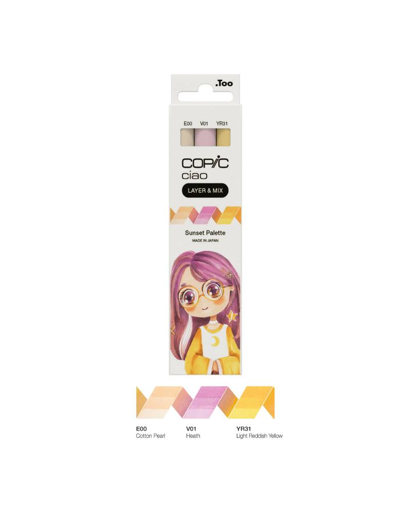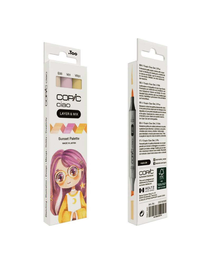 Il Set Marker Layer&Mix Copic Ciao Sunset Palette contiene tre tonalità che si abbinano perfettamente per creare atmosfere calde e suggestive: