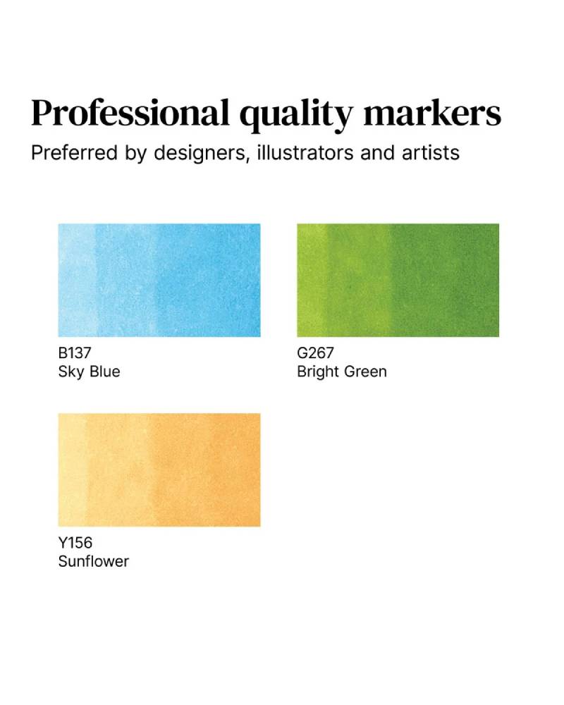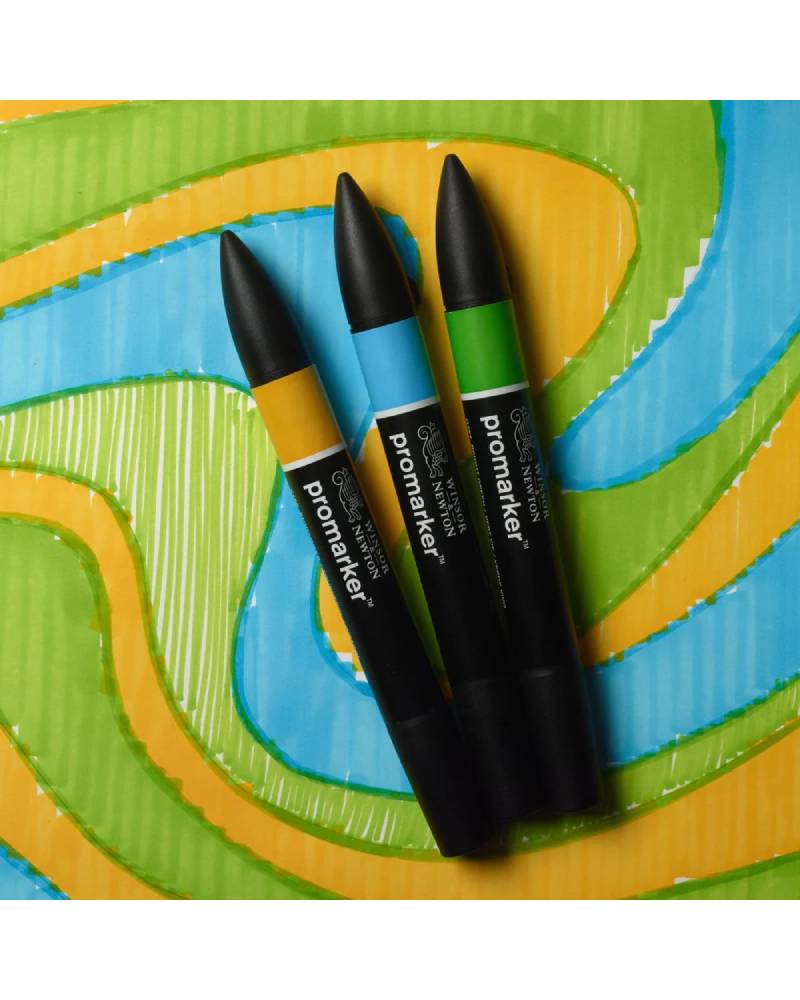 La formula blend-friendly, inoltre, consente di sovrapporre i colori con facilità, creando sfumature morbide e transizioni uniformi. Allo stesso modo, il Promarker Winsor & Newton si adatta perfettamente a diverse superfici, come carta, plastica, legno, vetro e acetato, per dare libero sfogo alla creatività su qualsiasi supporto.