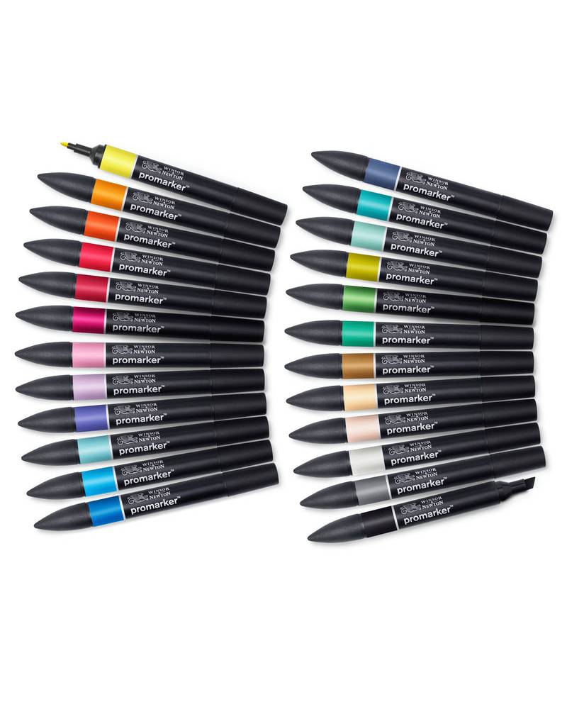 Questo set pennarelli ProMarker Winsor & Newton contiene una selezione di 24 colori perfetti per pennarelli per illustrazioni:
