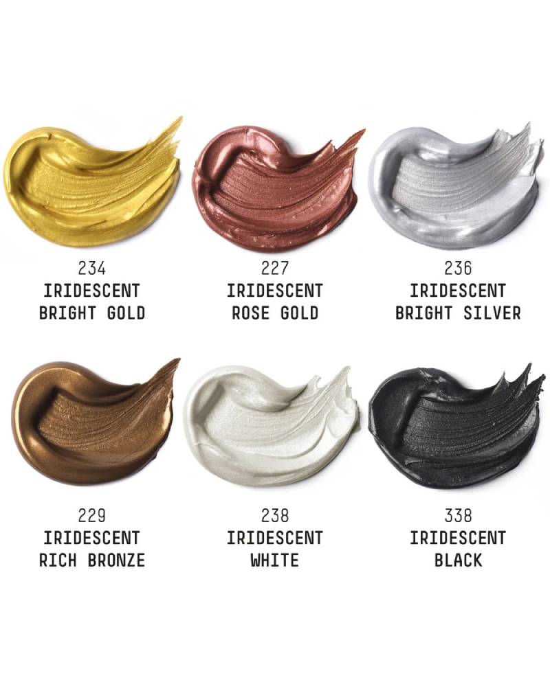 Il set colori acrilici liquitex Iridescenti Heavy Body è pensato per artisti che vogliono aggiungere riflessi luminosi, profondità e giochi di luce alle proprie opere. Questi acrilici liquitex combinano la celebre consistenza densa Heavy Body con pigmenti iridescenti, capaci di creare effetti cangianti che variano in base all’angolazione della luce e al punto di osservazione.