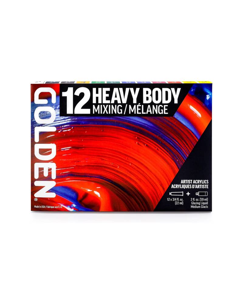 Il SET Heavy Body GOLDEN Mixing Set è la scelta ideale per artisti e professionisti che desiderano una gamma completa di colori acrilici professionali con un’elevata qualità e versatilità. Questo set include 12 acrili in tubetto da 22 ml ciascuno della linea Heavy Body, rinomata per la sua consistenza densa e burrosa, oltre a un tubetto da 59 ml di Gloss Glazing Liquid Medium, perfetto per ottenere effetti di velatura e ritardare l’asciugatura dei colori.
