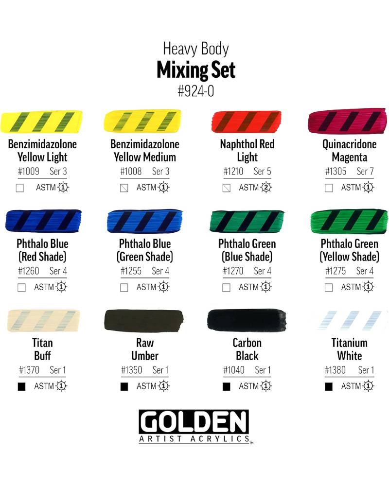 SET COLORI ACRILICI GOLDEN – Mixing Set 12 Tubetti + Medium