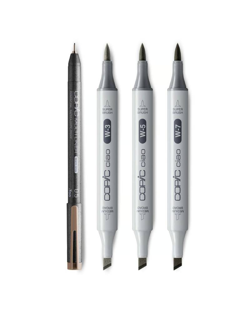 I colori del Set Copic Ciao Dark Warm Gray si fondono armoniosamente, garantendo risultati raffinati e professionali.