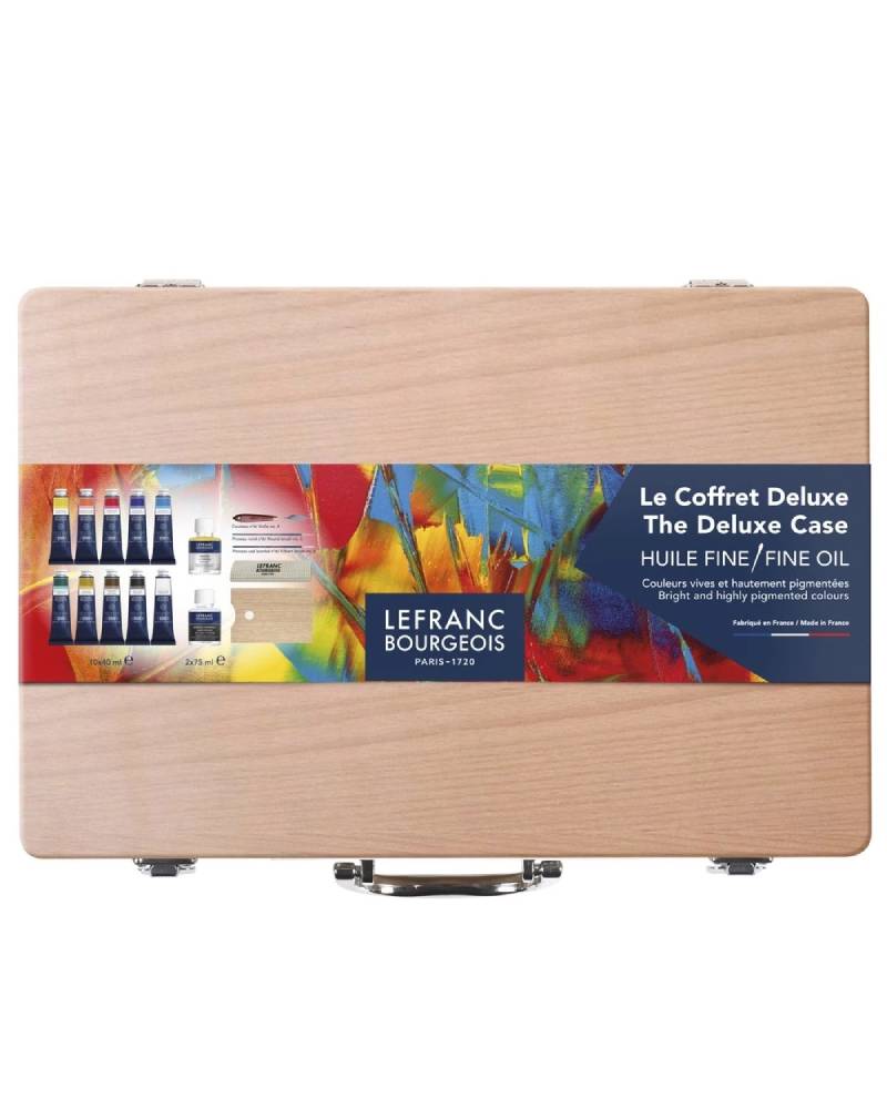 Scopri l’eleganza e la qualità del set olio Lefranc Bourgeois, un cofanetto Deluxe in legno pensato per offrire un’esperienza artistica completa. Ideale per studenti, principianti e pittori esperti, questo set racchiude tutto ciò che serve per creare opere intense, luminose e ricche di dettagli.