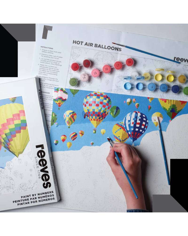 La confenzione colori acrilici reeves è un invito a rallentare, respirare e lasciarsi trasportare dalla leggerezza del cielo. Questo set guidato per principianti ti permette di realizzare una scena luminosa e affascinante di mongolfiere colorate in volo, accompagnandoti passo dopo passo in un’esperienza creativa serena e appagante. I reeves acrilici inclusi offrono colori brillanti e ben bilanciati, ideali per ottenere un risultato armonioso anche senza alcuna esperienza artistica.