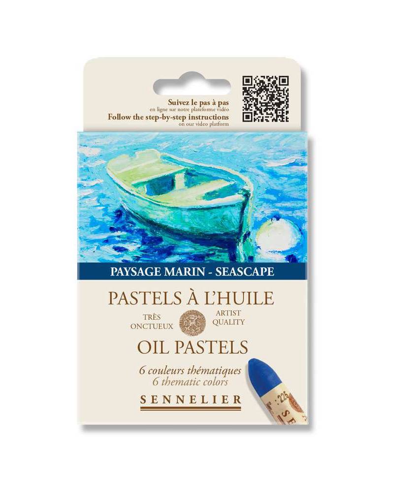Il set pastelli ad olio Sennelier è la scelta ideale per chi desidera tradurre l’atmosfera del mare in forma, luce e colore. Questo kit propone 6 colori selezionati per paesaggi marini, scelti per ottenere armonie azzurre, verdi acquatici e sfumature luminose perfette per rappresentare mare, cielo e coste.