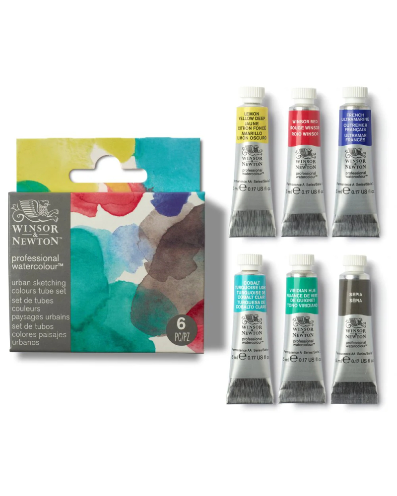 Il set acquerelli Urban Sketching Winsor & Newton professional è stato creato per artisti che dipingono dal vivo e vogliono una palette pratica, essenziale e altamente performante. Questo set da 6 tubetti da 5 ml è ideale per catturare scena urbane, architetture e paesaggi in modo rapido ed efficace.