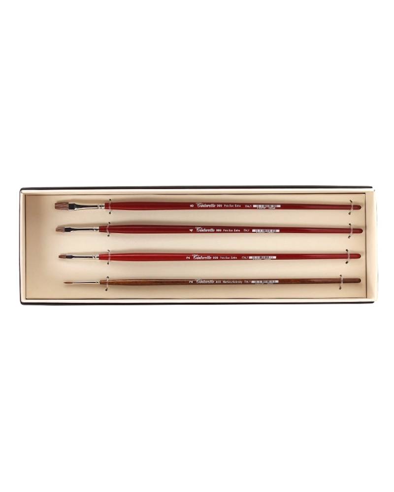 Questo raffinato set di pennelli include quattro pennelli accuratamente selezionati per soddisfare le esigenze di ogni artista:
